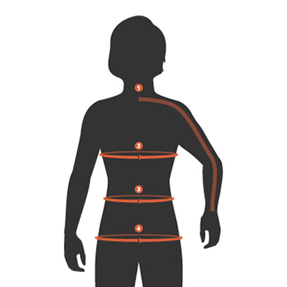 팔꿈치를 구부린 상태에서 목 중앙(뒤)부터 팔꿈치까지, 그리고 손목까지 측정합니다.